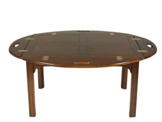 A mahogany reproduction oval butler's tray coffee table.