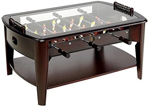 Best foosball coffee table reviews: Foosball wood and glass coffee table. Be the first to ask a question. It features a clear glass top over a playing field, serving as a great resting spot for snacks and beverages. The coffee foosball table can be used for both entertaining and as a handy place for setting out snacks or displaying books or accessories thanks to the glass top and bottom shelf.