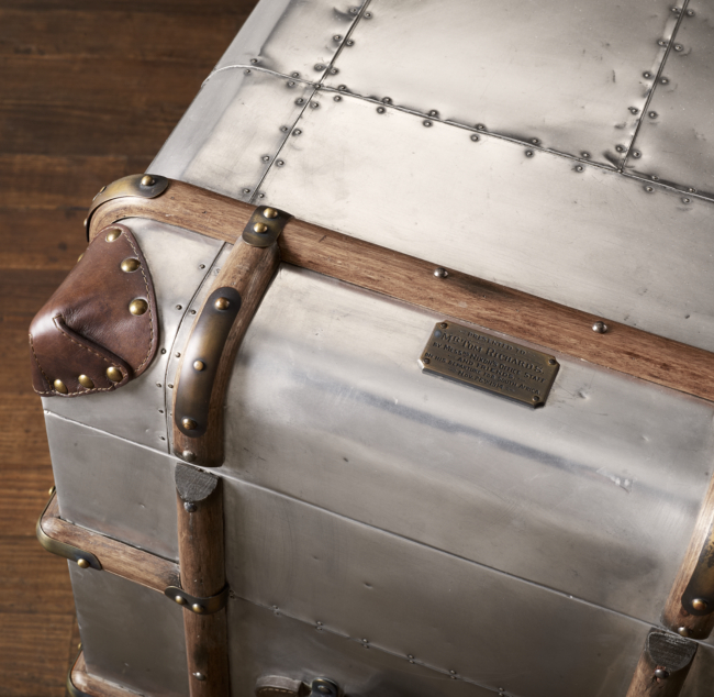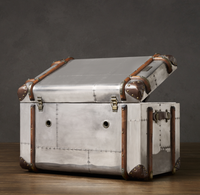 00 list price $345.44 $ 345. Nauticalmart richard's trunk coffee table aviation décor vintage aviator trunks. Acoustical solutions boards / easels Is the perfect choice for a bold, organized home. The metal magazine stand is very versatile and can be used in many ways. Southern enterprises voyager espresso trunk coffee table. Design plus gallery presents a richards' trunk coffee table by restoration hardware. The aluminum has a matte finish that's lightly distressed for a vintage look; Richard's trunk coffee table, material:aluminum hand made of polished aluminum wrapped around solid hardwood accented with steel screws trunk is lined with black cotton canvas has a single wide space for normal daily care, dust with a feather duster or wipe with a clean, dry cloth to maintain the shine, buff occasionally with metal polish. Page 1 of 1 start over page 1 of 1. Customers also viewed these products. L 58, depth 39 1/2, h. A large narrow trunk covered in charcoal waxed canvas with wood frame and metal mounts.